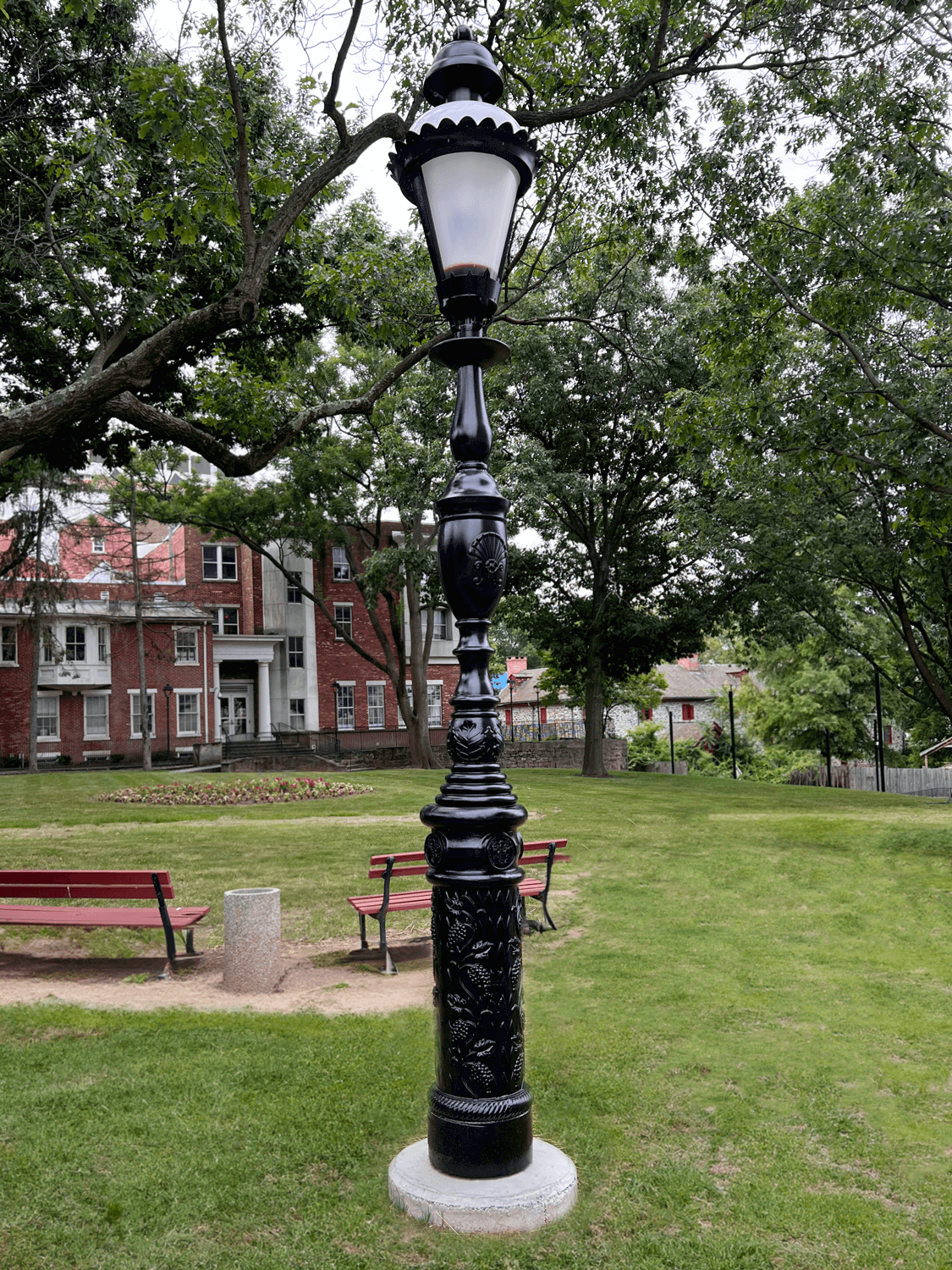 A close collaboration was upheld between Spring City, the architect, and the lighting designer throughout the entirety of the project. Working solely from photographs, Spring City undertook the task of crafting custom fixtures, poles, crossarms, and wall brackets for this restoration project. Spring City initiated the process by creating a 3D model using modern technology to depict the design's details. The physical prototype enabled both the architect and the lighting designer to comprehensively visualize the design and make any necessary adjustments. Following the final approval of the 3D model, Spring City generated a scaled 2D cutout. This cutout aids in comprehending the actual scale at the future installation site and ensures that the products align with the desired aesthetic. Spring City's methodical approach guarantees that customers receive products that surpass their expectations while simultaneously nurturing a collaborative team relationship, rather than a traditional customer/vendor dynamic, thereby fostering a strong partnership.